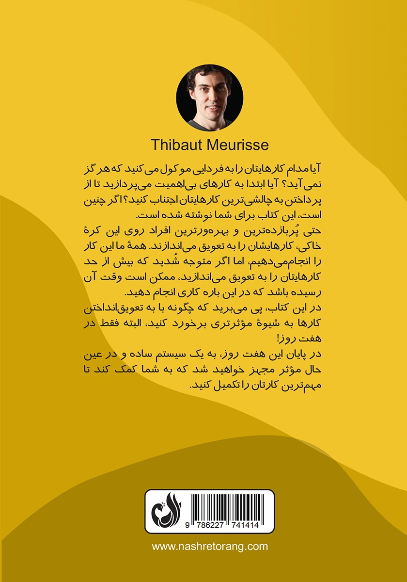 کتاب “اقدام فوری” یک برنامه هفت روزه برای افرادی است که به دنبال راهی برای مقابله با تنبلی و بازگرداندن انگیزه در زندگی خود هستند. تیبو موریس در این کتاب با استفاده از تکنیکهای عملی و قابل اجرا، به شما نشان میدهد که چگونه میتوانید اهمالکاری را پشت سر بگذارید و کارهایتان را به بهترین شکل انجام دهید. این کتاب نه تنها برای کسانی که همیشه کارهای خود را به تعویق میاندازند مفید است، بلکه به تمامی افرادی که به دنبال افزایش بهرهوری و مدیریت بهتر زمان هستند، کمک میکند.گام بعدی که او پیشنهاد میدهد کتاب تمرکز قدرتمند اوست که تکمیل کننده این میسر موفقیت است.برای آشنایی بیشتر با کتاب های تیبو موریس و سایر نویسندگان در این زمینه به فروشگاه ما سری بزنید.