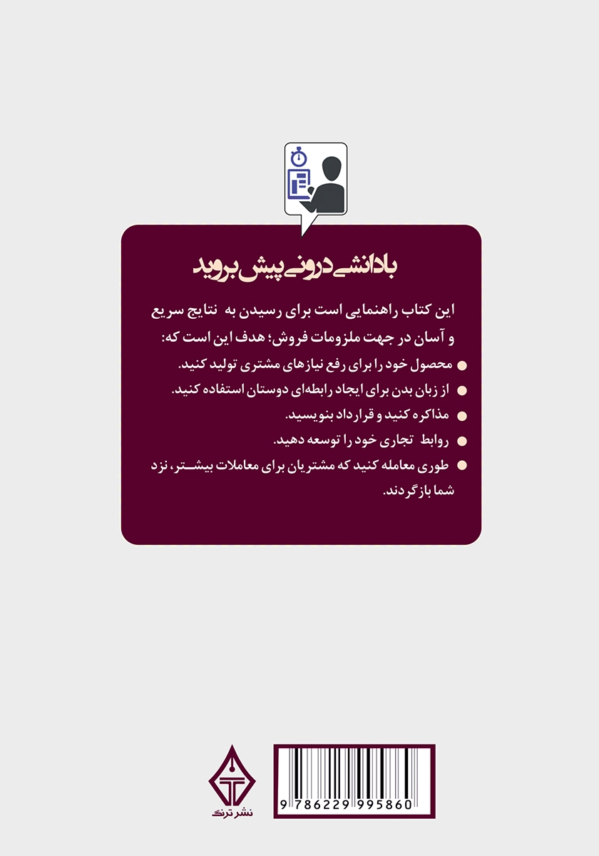 - کتاب شامل تکنیکها و استراتژیهای فروش است که میتوانند بهطور چشمگیری عملکرد فروشندگان را بهبود دهند. با خواندن این کتاب، فروشندگان یاد میگیرند که چگونه مشتریان را شناسایی کرده، نیازهای آنها را درک کنند و سپس با استفاده از تکنیکهای متنوع، آنها را به خریداران تبدیل کنند.