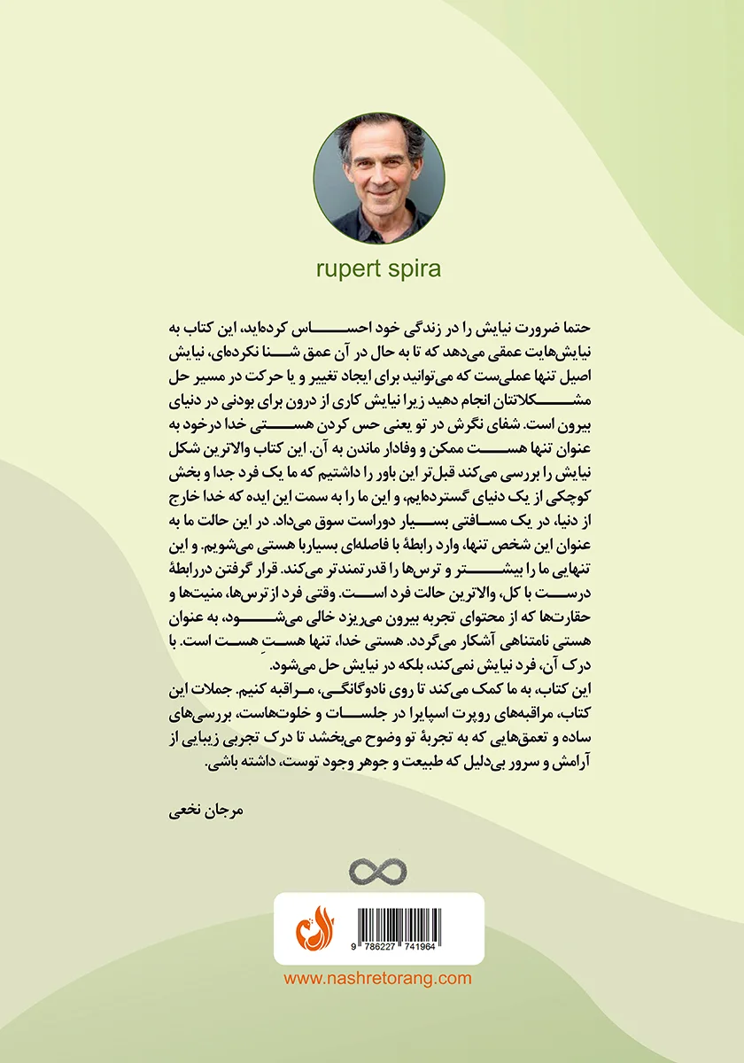 این کتاب در دسته بندی کتاب های خودشناسی نشر ترنگ قرار دارد اگرقلم اسپایرا را دوست دارید کتاب های دیگری از او پیشنهاد ماست[ حضور، هنر صلح و خوشبختی | صمیمت تجربه ]